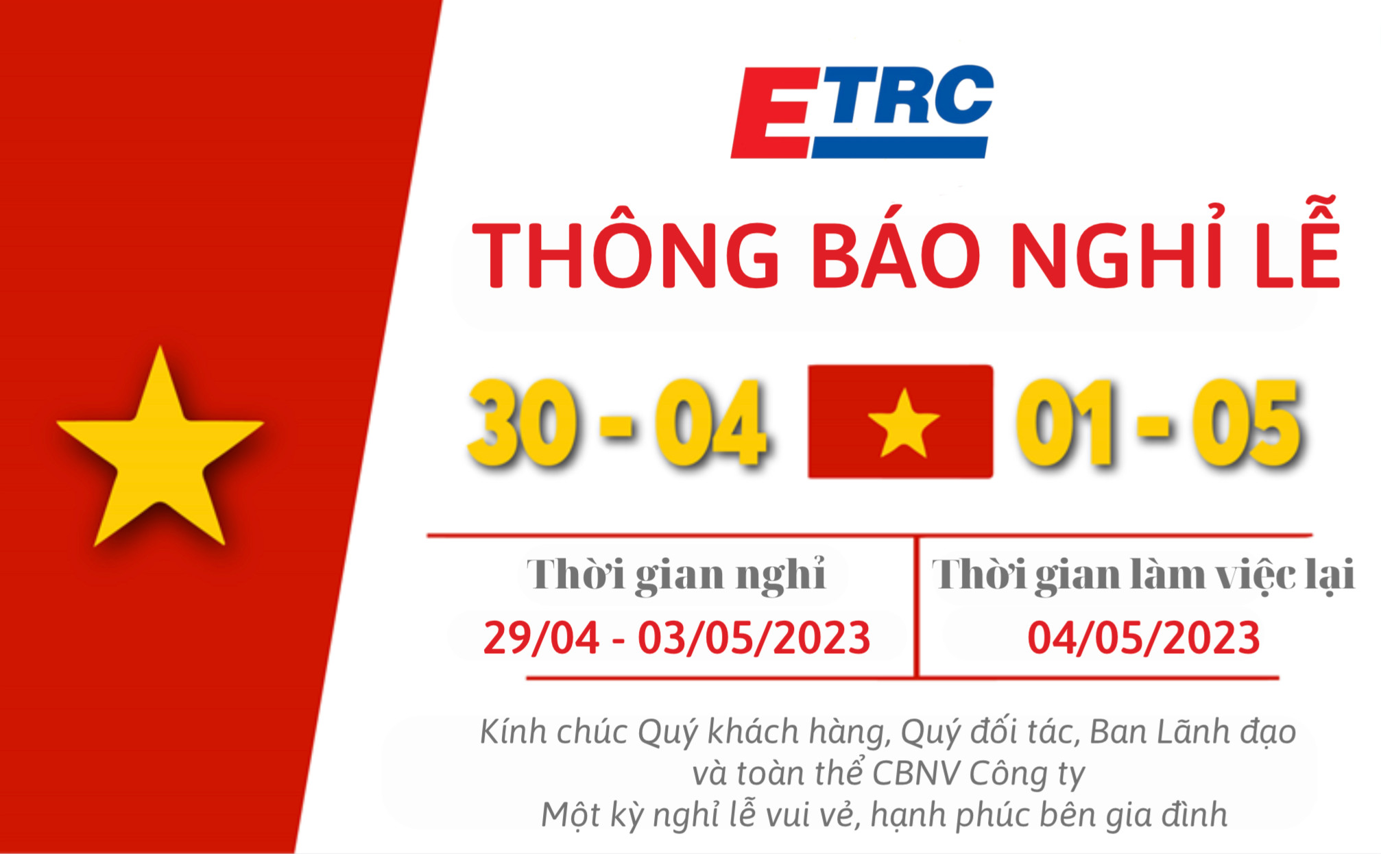 ETRC xin trân trọng cảm ơn Quý khách hàng, Quý Đối tác đã tin tưởng chúng tôi trong suốt thời gian qua. Một lần nữa kính chúc toàn thể Quý Khách hàng, Quý Đối tác có một kỳ nghỉ thật vui vẻ, mạnh khoẻ và ý nghĩa!