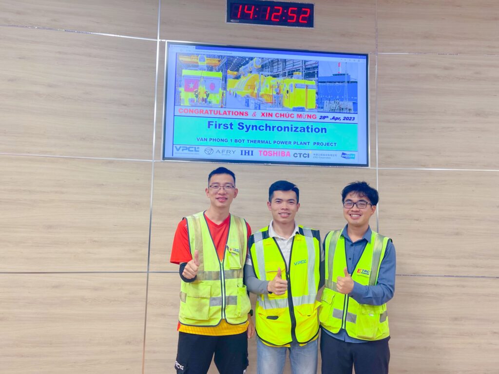 Sau khi hoàn thành các thủ tục nghiệm thu, đóng điện thành công cho Sân phân phối (“SPP”) 500kV Nhà máy nhiệt điện (“NMNĐ”) BOT Vân Phong 1 và các thử nghiệm liên động điều khiển giữa  SPP 500kV NMNĐ Vân Phong 1 với TBA 500kV Vân Phong, thử nghiệm đóng điện thành công máy cắt kháng 500kV vào Tháng 12/2022. Vượt qua những khó khăn về mặt thời gian cận kề ngày Nghỉ lễ dài ngày, tiếp nối thành công ấy hôm nay ngày 28/04/2023 Công ty CP Nghiên cứu và Thí nghiệm điện (ETRC) phối hợp với Chủ đầu tư, Liên danh Tổng thầu cùng các đơn vị liên quan của EVN đã hòa lưới thành công tổ máy #1 – Nhà máy Nhiệt điện BOT Vân Phong 1. Dự án hòa lưới tổ máy thành công một lần nữa khẳng định vai trò, vị thế của ETRC trong những công trình trọng điểm trong lĩnh vực thí nghiệm điện, và sự tin yêu của khách hàng đối với ETRC.